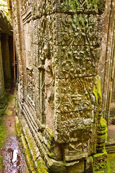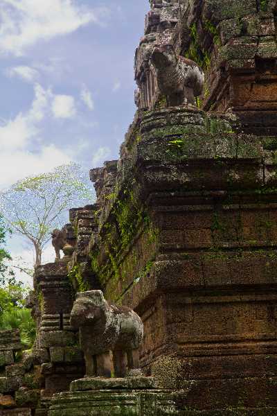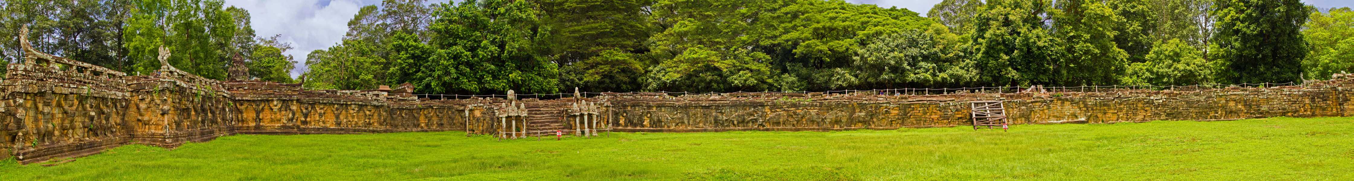 The Elephant and Leper King terraces stretch over a kilometre, the former to the south and the latter to the north. They are on the east side of Phimeanakas, which only contains small ruins and two large rectangular pools. It is impressive to see the great length of the terraces and hard to capture on a photo.