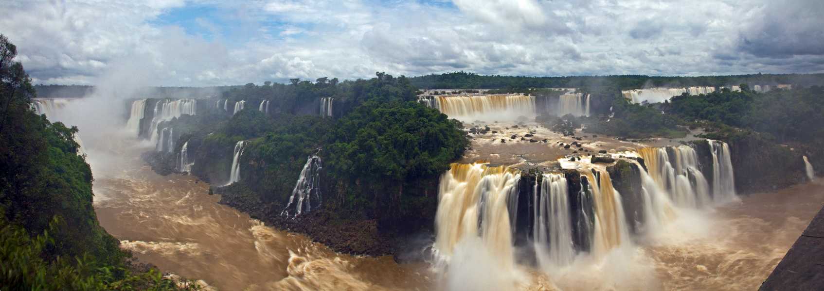 The two panoramas were taken on the Brazilian side of the falls, the first from the upper level of the panorama point, the second about halfway along the panorama walk. Unfortunately it was impossible to get really clear views due to the immense amount of spray caused by the high water levels.