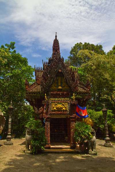 Preah Ang Thom houses a large statue of Buddha. It was built in the 16th century and is eight metres high. Preah Ang Thom is the sacred and worshipping god for Ku Len Mountain. There are also two large Cham Pa trees nearby. Besides Preah Ang Thom, Chhok Ruot, footprints of Preah Bat Choan Tuk, Peung Chhok, Peung Ey So and Peung Ey Sey, can also be seen.
