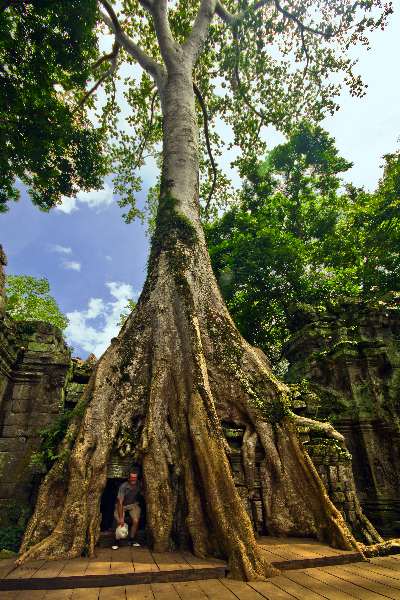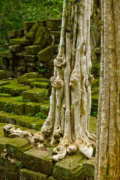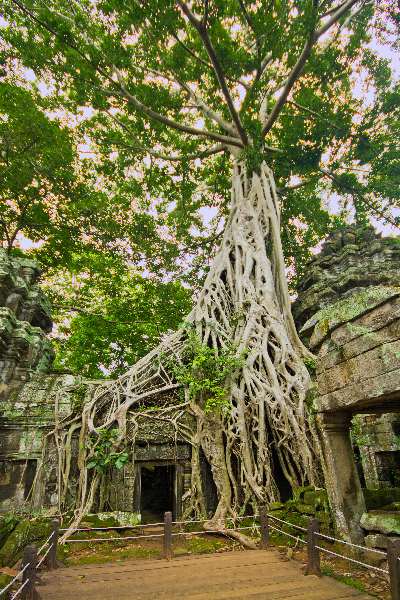 Unlike most Angkorian temples, Ta Prohm has been left in much the same condition in which it was found: the photogenic and atmospheric combination of trees growing out of the ruins and the jungle surroundings have made it one of Angkor's most popular temples with visitors.