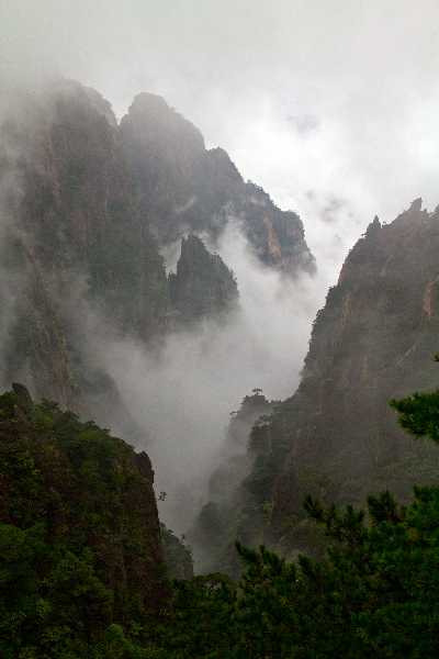 The second day on Huangshan started completely closed in by cloud.